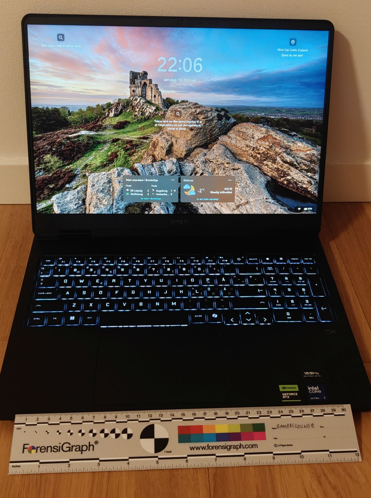Begrænsningen er VRAM. 8 GB er fint i den aktuelle konfiguration, men 4K + tunge teksturer presser kortet. Maskinen ikke designet som 4K-stationær erstatning. CPU’en holder trit uden at overophede og køleløsningen – HP’s Tempest Cooling – er effektiv uden at blive urimeligt støjende. Fuldstørrelses tastaturet er behageligt og præcist. Touchpad’en er responsiv, og byggekvaliteten føles gennemarbejdet. HP’s OMEN Gaming Hub giver adgang til performance-profiler som Eco, Balanced og Unleashed Mode. Softwaren er blevet bedre over generationerne – noget vi også tidligere har fremhævet i OMEN-anmeldelser – men der er stadig en smule for meget “ekstra” indhold i interfacet.