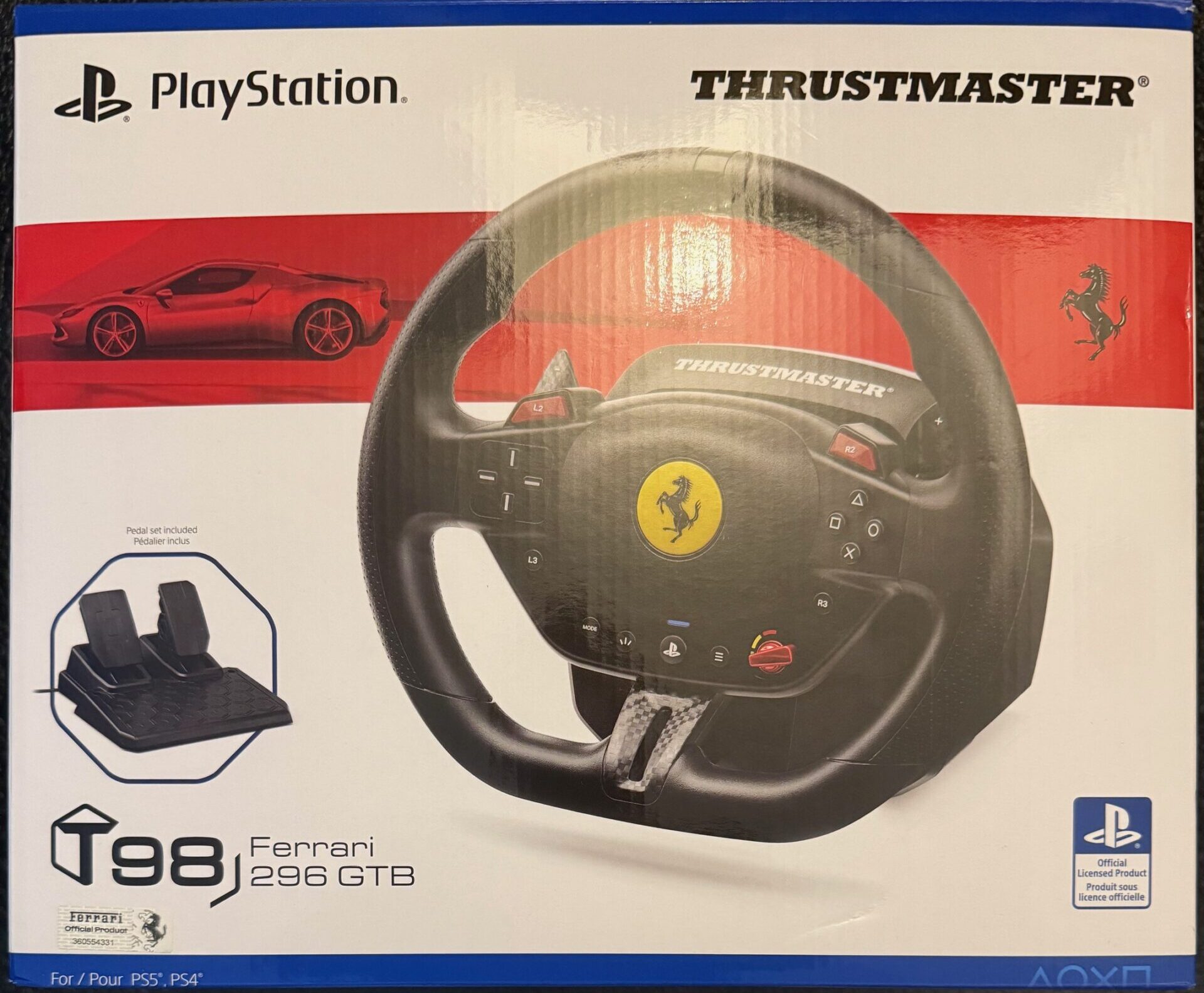 Markedet for rat og pedaler til konsol er i dag større end nogensinde før. Fra kompromisløse direct drive-løsninger i den tunge ende til mere overkommelige entry-level produkter i den anden. Thrustmaster T-98-P Ferrari 296 GTB PS5/PS4 placerer sig tydeligt i sidstnævnte kategori – men gør det med en selvsikkerhed, der vidner om mange års erfaring inden for periferiudstyr til racerspil.