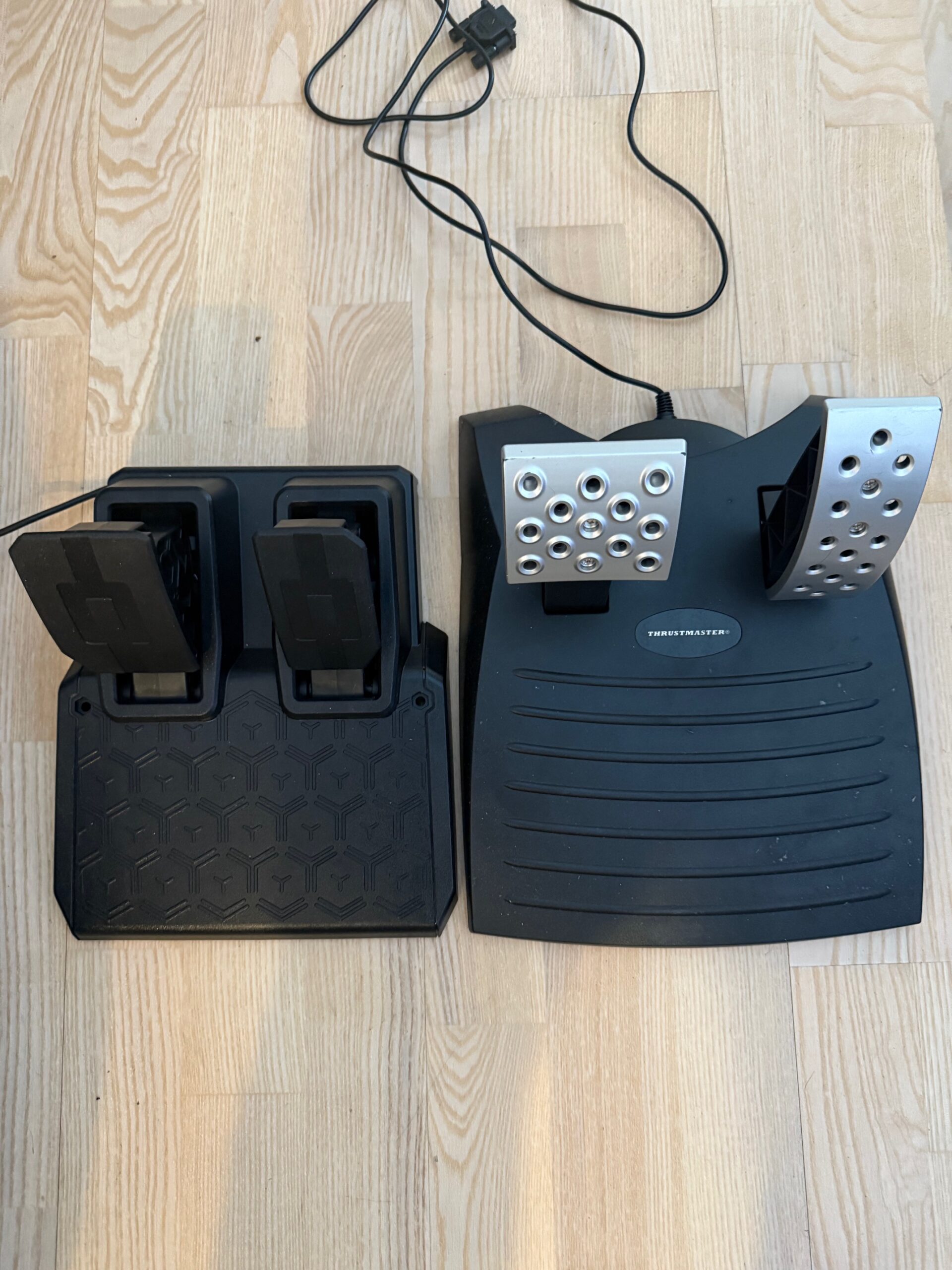 I praksis betyder det, at pedalerne kan begynde at glide, vippe eller “kure rundt” – især i spil, hvor man konstant skifter mellem gas og bremse. Det er et velkendt problem for denne type stand-alone pedalsæt og mere et spørgsmål om fysik end designfejl, men det påvirker oplevelsen. Interessant nok fandt jeg et ældre Thrustmaster-pedalsæt fra PlayStation 1/2-æraen, som havde en større underflade. Resultatet var dog det samme: Uden tilstrækkelig vægt eller fast montering i gulvet forbliver stabiliteten en udfordring.